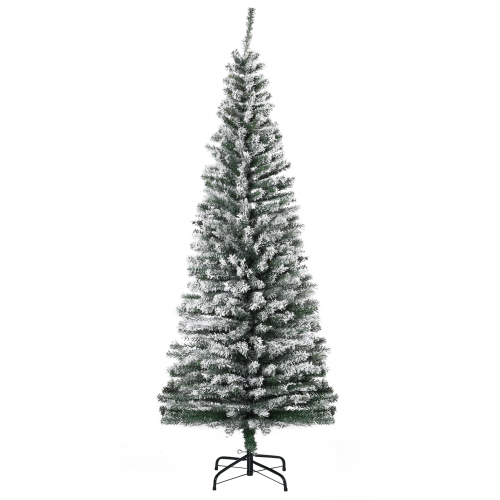 Portemine de Noël à motif floqué de 6 pi de HOMCOM, arbre de Noël fin artificiel avec embouts de branche réalistes, support pliant en métal, vert