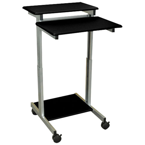 Faites des présentations multimédias avec un professionnalisme absolu grâce au poste de présentation debout de 24 po de Luxor. Il est doté d'une tablette à deux niveaux et d'une surface en bois stratifié double, pour une commodité accrue et un plus beau style. Les tablettes supérieures et inférieures sont conçues pour être ajustées simultanément, pour plus de flexibilité. Quatre roulettes et deux freins verrouillables offrent une excellente mobilité.