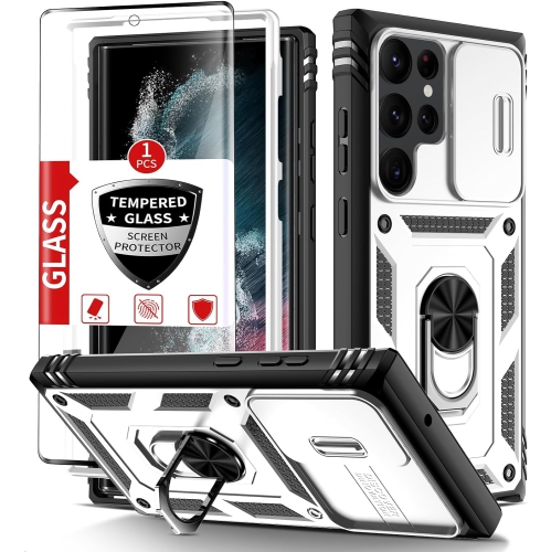 Pour étui avec protecteur d'écran en verre pour Galaxy S22Ultra de Samsung, anneau et caméra avec béquille magnétique intégrée