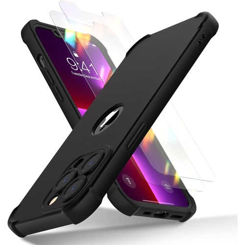 Pour étui iPhone 13 Pro Max avec [protecteur d'écran en verre trempé 2], dos flexible en silicone antichoc et rigide