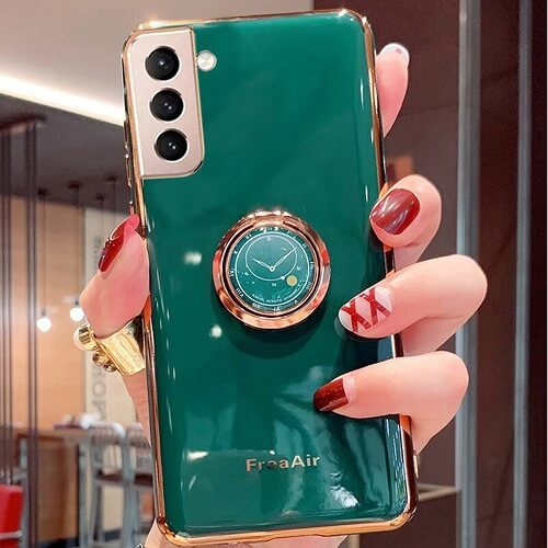 Pour Galaxy S21 plus de Samsung, étui à anneau vert foncé avec placage flux élégant