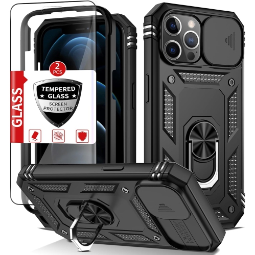Pour iPhone 12 et 12 Pro avec 2 protecteurs d'écran en verre trempé, avec béquille magnétique à 360° pour caméra