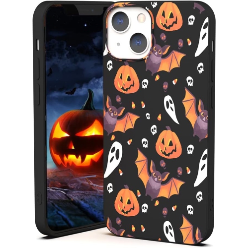 Pour iPhone 13 Halloween Case Pumpkin Bats, cute Design Kids Black Case antichoc Soft Skull Nuts