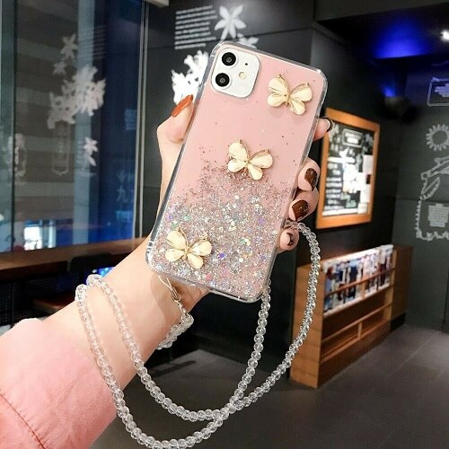 Pour l’étui-portefeuille avec dragonne à rabat en cristal rose Smart d’Apple iPhone 12