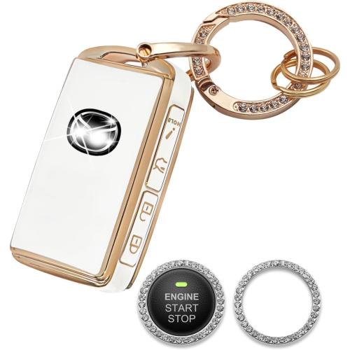 Pour le couvre-porte-clés Mazda compatible avec les Mazda 3 Hatchback CX-5, CX-30, CX-10 2020-2022, étui de protection souple en TPU avec autocollant pour voiture Bling Ring Batteries blanches pour téléphone cellulaire