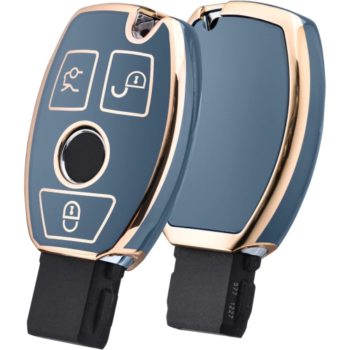 Pour couvre-porte-clés Mercedes Benz, étui souple en TPU de qualité supérieure compatible avec le porte-clés intelligent sans clé Mercedes Benz C E S M CLS CLK G Cl (bleu Gold Edge)