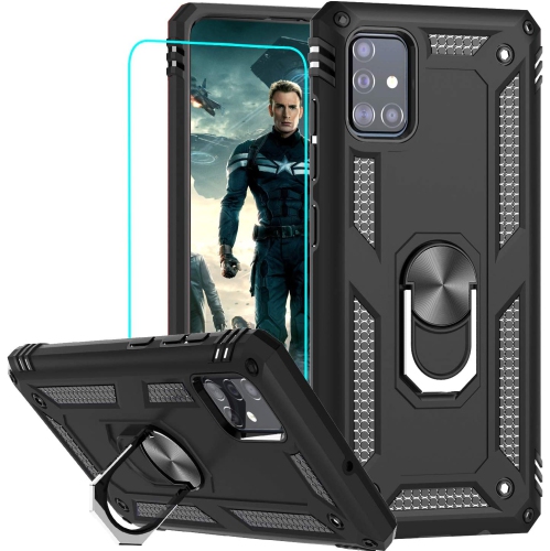 Pour Samsung Galaxy A51 Étui téléphone cellulaire avec béquille en anneau protecteur d’écran pour pare-chocs en TPUR de qualité militaire pour hommes