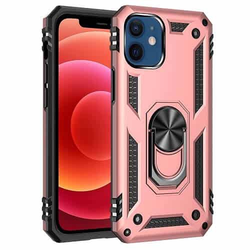 Pour support de voiture à anneau magnétique en métal rotatif de qualité militaire 360 degrés iPhone 12 Mini d’Apple, béquille et étui robuste