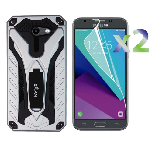 Protecteurs d’écran X 2 d’Exian pour Galaxy J3 prime de Samsung avec étui protecteur avec support - Violet