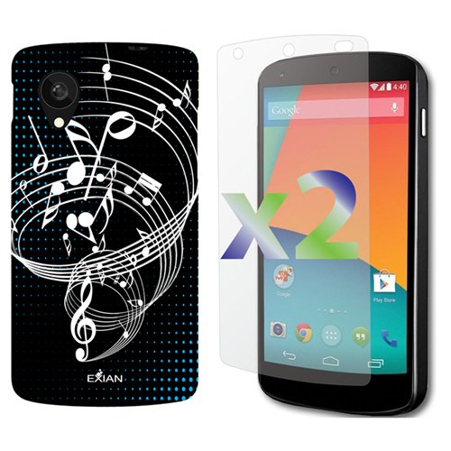 Protecteurs d’écran X 2 d’Exian pour Nexus 5 de Google et étui en TPUR avec motifs d’Exian - Noir