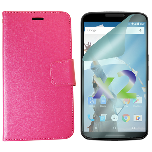 Protecteurs d’écran X 2 d’Exian pour Nexus 6 de Google et portefeuille en cuir tu noir