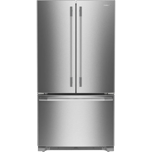 Conservez vos aliments au frais grâce au réfrigérateur à deux portes de 36 po de KitchenAid. Il présente une grande capacité de 29,2 pi³ et un distributeur d'eau interne, pour une apparence épurée. Le système de conservation Preserva garde les aliments croquants et l'éclairage DEL très lumineux vous permet de tout trouver facilement dans votre réfrigérateur.Réfrigérateur à deux portes 29,2 pi³ 36 po avec distributeur d'eau de KitchenAid (KRFF136SPS) - Acier inoxydable PrintShield