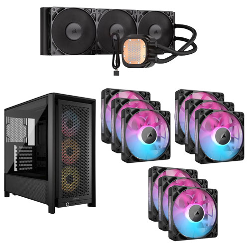 Optimisez la performance de votre processeur grâce à cet ensemble de Corsair, qui comprend le refroidisseur liquide Nautilus RS ACL, des ventilateurs de tour à modulation d'impulsions RX120 RGB de 120 mm avec concentrateur système iCUE LINK et une tour d'ordinateur ARGB Frame 4000D.