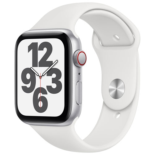 Refurbished (Good) - Apple Watch SE (GPS + Cellular) 44mm Silver Aluminum Case with White Sport Band