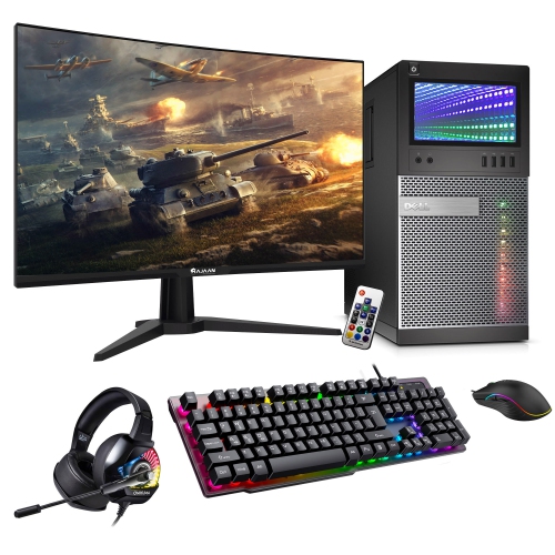 Refurbished (Good) - Dell OptiPlex 7020 w/ 27" Gaming Monitor i7 4770 3.4 GHz NVIDIA GT 1030 2GB 16GB RAM 512GB SSD 500GB HDD Win 10 Pro, Gaming Headset, HAJAAN Keyboard & Mouse