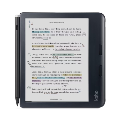 Repoussez les limites de votre expérience de lecture avec l'ensemble Libra H2O Colour et 2 stylets Kobo. Cet ensemble vous donne la liberté d'annoter, d'organiser et de mettre en valeur vos livres numériques préférés dans des couleurs éclatantes.