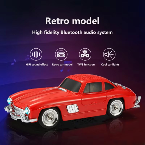 Roadster Car Shape Bluetooth Speaker – HD Sound, FM Radio, TWS Stereo, LED Party Lights, USB/TF Playback, Hands‑Free Mic – Cool Portable Car Décor for Home, Office & Outdoors
