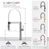 Robinet de cuisine à une poignée en acier inoxydable avec tuyau à bec blanc escamotable à trois modes K-140H