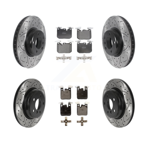 Rotor de frein à disque perforé à revêtement arrière avant et ensemble de plaquettes semi-métalliques pour BMW 428i KDF-101112