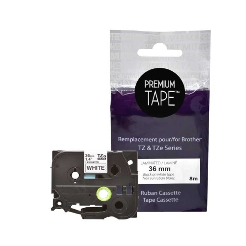 Solution de rechange pour les TZe-261 de Brother - 1-1/2 po x 26 pi (36 mm x 8 m) - Noir sur blanc