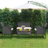 Il s’agit de notre ensemble de 4 meubles, y compris 1 causeuse, 2 canapés simples et 1 table basse avec plateau en verre. Cet ensemble de meubles illuminera votre espace extérieur et le fera animer pour son style moderne et haut de gamme. Fait de rotin écologique et d’un cadre en acier, ce meuble sera robuste et vous servira longtemps. Les coussins de siège blancs assortis sont inclus pour ajouter du confort au siège.