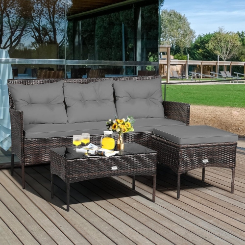 Salon de jardin en rotin 3PCS avec coussins Gymax