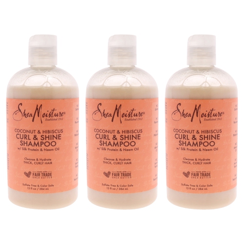 Shampooing Coconut and Hibiscus Curl Shine par Shea Moisture pour unisexe - 13 oz de Shampooing - Pack de 3