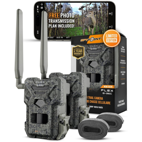 SPYPOINT Flex G-36-TWIN CAMO | Caméra de sentier cellulaire extérieure | Vidéo 1080p avec son, 36 mégapixels, vitesse de déclenchement 0,3S, flash 100 et portée de détection | Avec autonomie améliorée