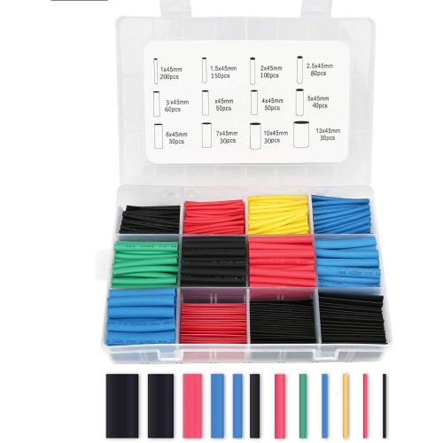 850 pièces et de nombreuses spécifications - rotation contre la chaleur longueur : 45 mm, diamètre intérieur : 1 mm / 1,5 mm / 2 mm / 2,5 mm / 3 mm / 4 mm / 5 mm / 6 mm / 7 mm / 10 mm / 13 mm.Pertes de haute qualité – les tubes sont faits de polyoléfine, le taux de rétraction de ces tubes thermorétractables est de 2 : 1 ou plus, bonne isolation électrique ou isolation des fils ouverts ou de ceux qui sont connectés.