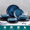 Starry Blue 12 Pieces Blue Dinnerware Set, Reactive Change Glaze Dinner Set, Plates and Bowls Set