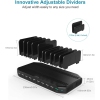 •Séparateurs réglables : Les déflecteurs ajustables vous permettent de régler la largeur dont vous avez besoin, et de tenir vos iPad, iPhone et tablette, même dans les étuis encombrants. la station de recharge électronique pour plusieurs appareils garde tout au même endroit, propre et agréable. Nous offrons un séparateur de rechange si vous avez perdu ou reçu un séparateur ajustable endommagé.