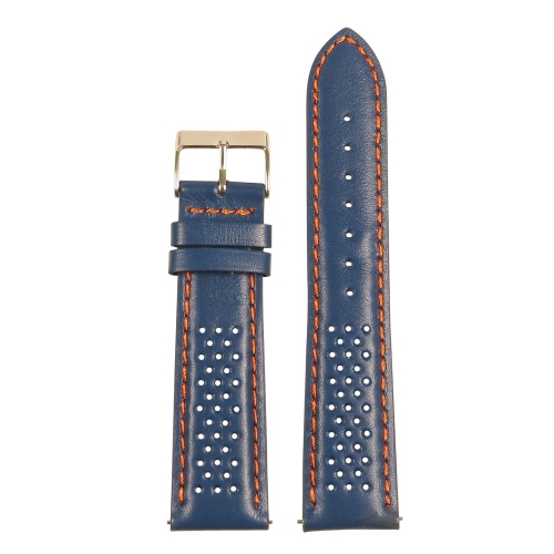 StrapsCo Bracelet de Montre en Cuir Perforé de Style Course Rallye GT - Bande à Relâchement Rapide - 22mm - Bleu & Orange