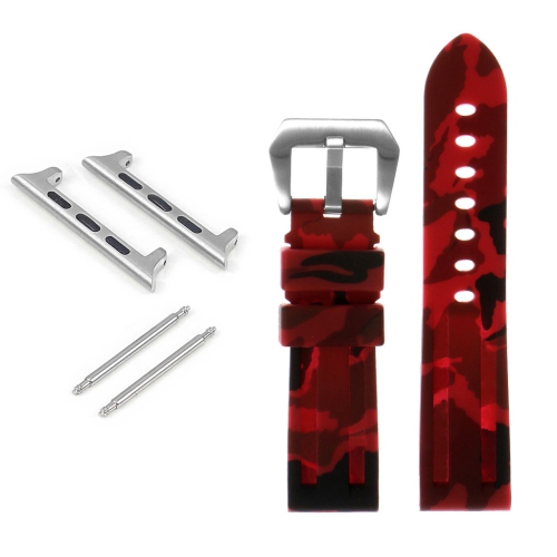 StrapsCo Bracelet de montre en silicone camo avec boucle Pre-V en acier inoxydable brossé pour Apple Watch. Équipé d'un adaptateur amovible assorti pour que vous puissiez porter l'un de nos bracelets de montre classiques les plus vendus avec votre Apple Watch.