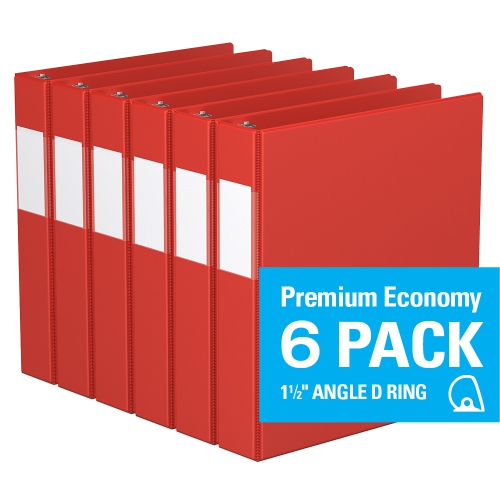 Super économie, Reliure à anneaux en “D” inclinés 1.5 po, paquet de 6 – Rouge