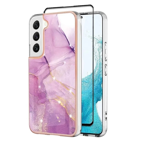 [SuperShield]pour Samsung Galaxy S21 FE 5G TPU étui souple Slim Cute Men femme étui protecteur antichoc en silicone marbre - Violet avec protecteur d'écran en verre trempé gratuit