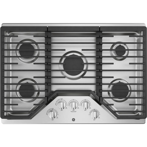 Créez de délicieux repas facilement avec cette surface de cuisson au gaz de 30 po de GE. Ce modèle à 5 brûleurs inclut un brûleur PowerBoil de 15 000 BTU qui permet une ébullition rapide, de faire cuire des aliments à la vapeur ou de les faire sauter, et plus encore. Les grilles lavables au lave-vaisselle et les brûleurs scellés permettent un nettoyage rapide et facile.Surface de cuisson au gaz 5 brûleurs de 30 po de GE (JGP5030SLSS) - Inox - BO - Parfait état