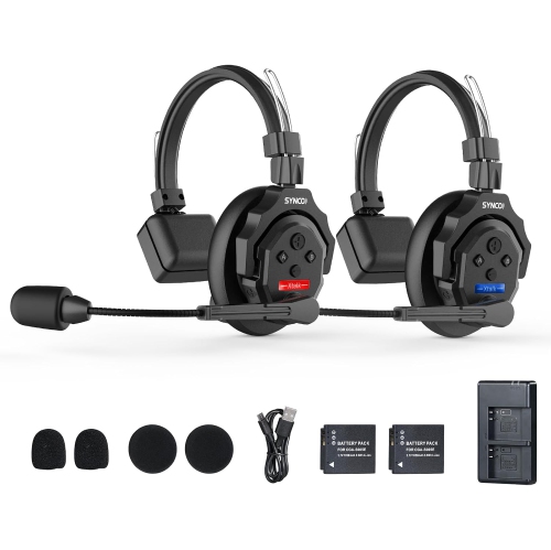 SYNCO – Casque d'écoute sans fil XTALK X2 pour 2 personnes, casque de communication 2,4 GHz duplex intégral avec suppression du bruit Surveillance en temps réel 20 heures 350 M de travail/1148 pi pour les productions de films en équipe
