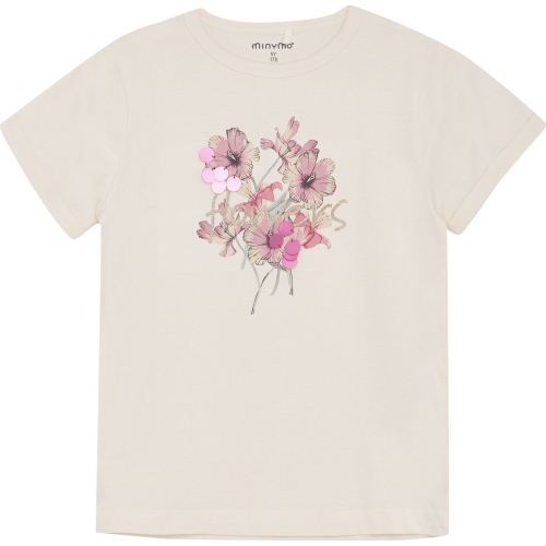 T-shirt à manches courtes de Minymo - Fleurs roses/cygne blanc (du 5 au 2 ans)