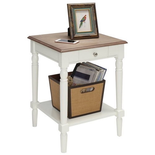 La table de bout French Country de Convenience concepts combine raffinement et élégance. Doté d’un tiroir pour un espace de rangement dissimulé, vous pouvez dissimuler les télécommandes ou d’autres petites bricoles. La tablette inférieure offre un espace de rangement ouvert pour une foule d’objets, des livres aux paniers. Faite de bois, cette table est conçue pour durer pendant de nombreuses années. Articles assortis disponibles et vendus séparément.caractéristiques : Magnifique ton deux tons CA...