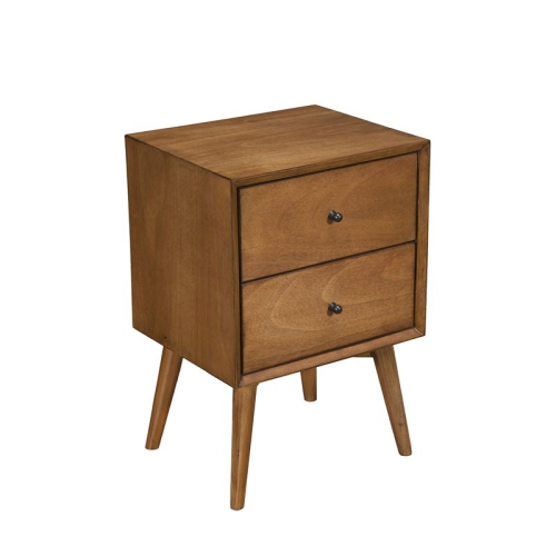 Table de chevet en bois à 2 tiroirs Flynn Mid Century d’Alpine Furniture, brun noisette