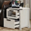 Table de chevet WAMPAT avec station de chargement, table de bout champêtre à 2 tiroirs, table de chevet rustique pour canapé d'appoint pour chambre à coucher et salon, blanc antique