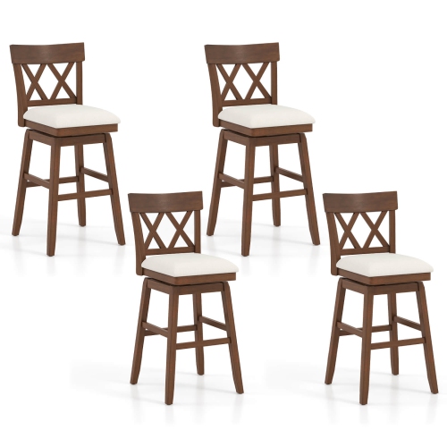 Tabouret de bar en bois de 30 po 4 PCS de Costway avec dossier profilé Siège rembourré pivotant pour cuisine beige