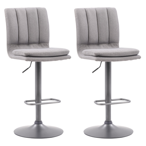 Cet ensemble de tabourets de bar 2 pièces est idéal pour savourer des cocktails au bar de la maison ou des brunchs du dimanche sur l'îlot de cuisine. Chaque tabouret de bar est doté d'une base élégante à piédestal en acier gris foncé. Le dossier haut touffeté verticalement et le siège en peluche sont enveloppés dans un tissu durable et rembourrés pour un meilleur soutien. Une fonction de réglage de la hauteur et un repose-pieds vous permettent de vous asseoir confortablement. Sans accoudoirs, ces tabourets de bar offrent une assise non restrictive et une fonction de pivotement à 360° qui vous