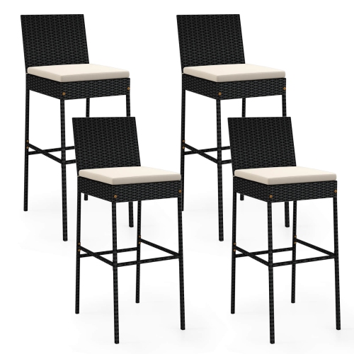 Tabourets de bar de patio en osier 4 PCS de Costway – Chaises de bar avec coussins – Blanc cassé