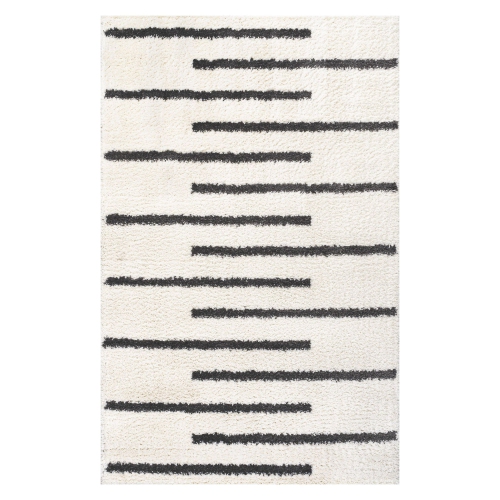 Inspiré par les tapis marocains vintage, notre tapis rayé moderne a un poil doux et bas. Le motif à rayures centrales est tissé en gris sur un fond ivoire; notre modèle d'inspiration tribale rappelle les tapis traditionnels tressés à la main. Donnez un style bohémien à votre salon, chambre ou coin lecture avec ce tapis facile à entretenir.