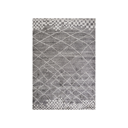 Inspiré par les tapis marocains vintage, notre tapis géométrique moderne est idéal pour un intérieur minimaliste. Le motif de diamant aléatoire est tissé en ivoire sur un fond gris, et bordé de carrés décalés. Les fils mélangés créent un style rétro discret.