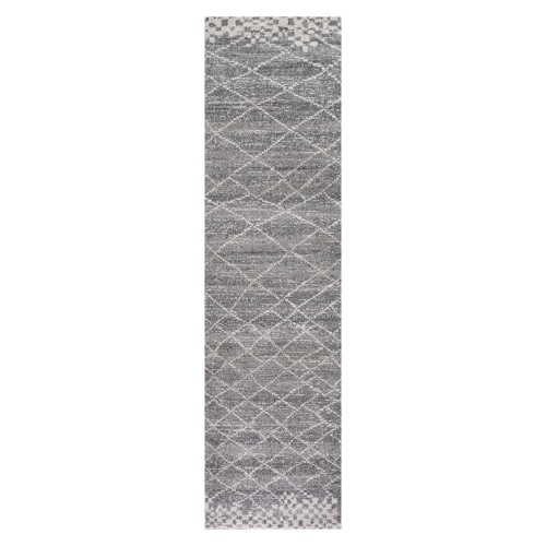 Inspiré par les tapis marocains vintage, notre tapis géométrique moderne est idéal pour un intérieur minimaliste. Le motif de diamant aléatoire est tissé en ivoire sur un fond gris, et bordé de carrés décalés. Les fils mélangés créent un style rétro discret.