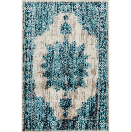 Tapis d'appoint bleu rétro Saville 2 pi 2 po x 3 pi 11 po