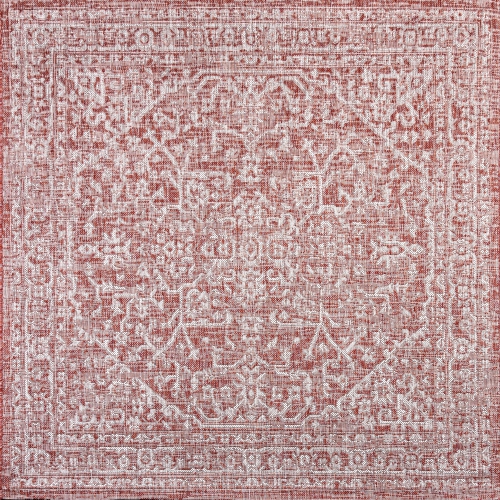 Ce tapis coloré en médaillon ajoute un style bohémien riche à un porche extérieur ou à un patio. Les tons variés de taupe combinés avec un motif rouge rouillé donnent à ce tapis une allure rétro tissée à la main.