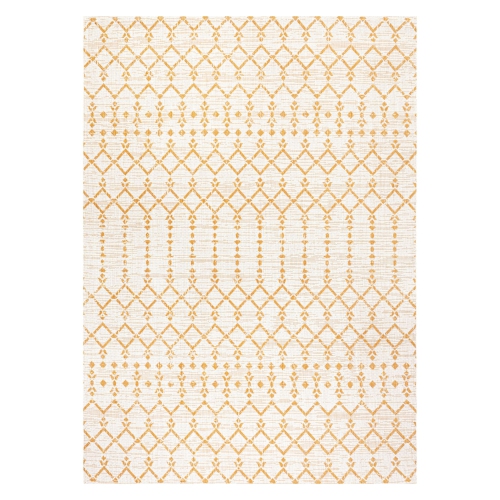 Avec son design géométrique inspiré par les motifs tribaux marocains, notre tapis Boho-chic ajoute un style éclectique à un porche extérieur ou à un patio. Les tons variés de noir et de charbon combinés avec un motif gris pâle donnent à ce tapis un style rétro tissé à la main. Le modèle à tissage plat est également idéal pour les espaces achalandés à l'intérieur.